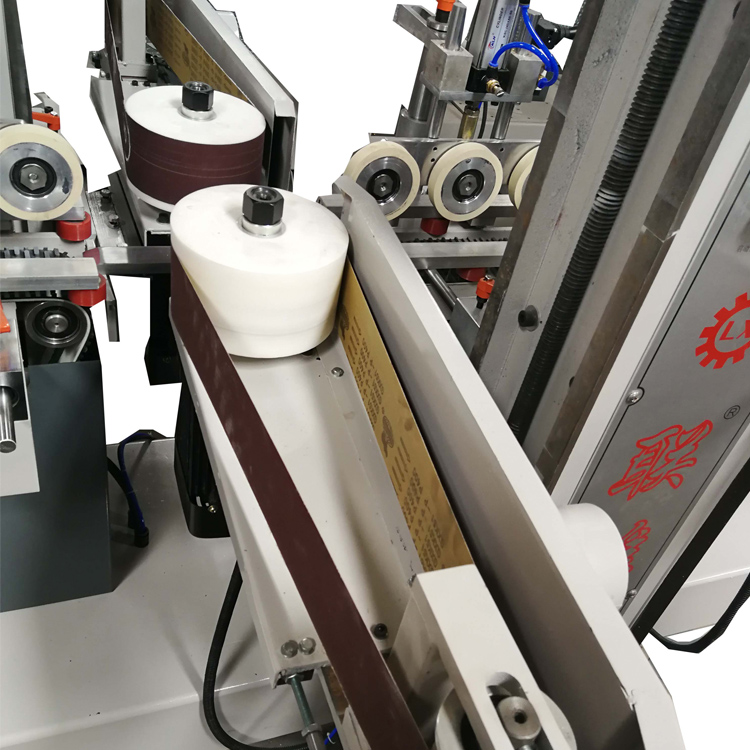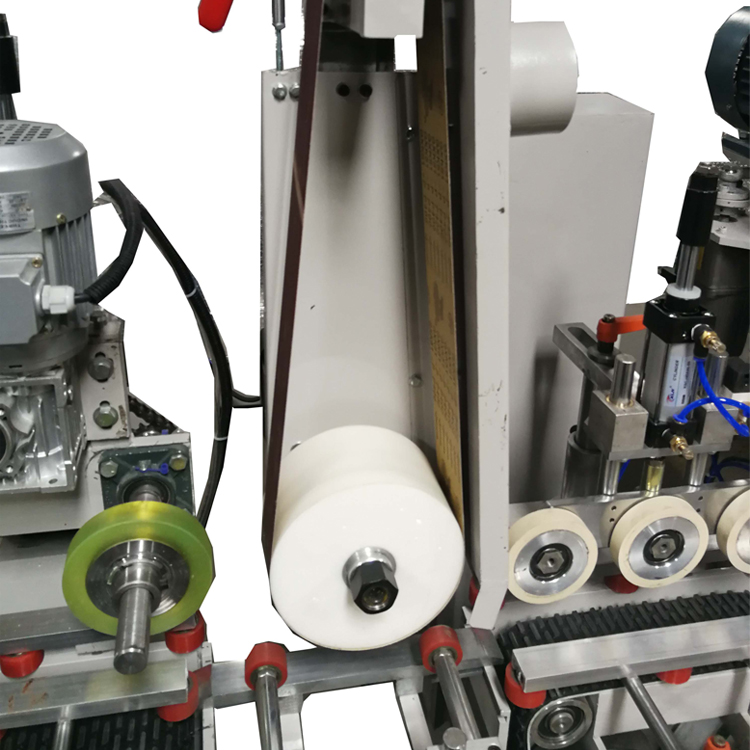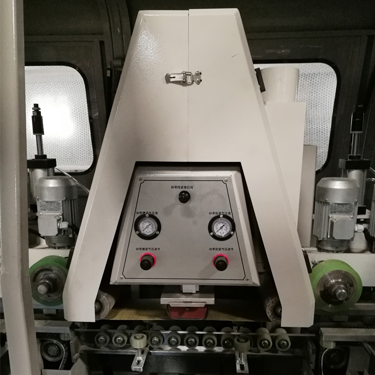 傳動(dòng)電機(jī)用7.5KW;送料速度:0-55M/分鐘;變頻調(diào)速;加工范圍:W180mm H80mm自動(dòng)補(bǔ)償砂輪(編程控制);砂光工件兩側(cè)和表面;砂光電機(jī)1.5KW變頻調(diào)速;可180度調(diào)角度;上下傳動(dòng)、壓輪用氣缸升降;平面處每軸可裝砂輪砂帶兩用;每軸可根據(jù)產(chǎn)品要求擺布;機(jī)器外觀尺寸:長(zhǎng)6800mmX寬1350mmX高1600mm